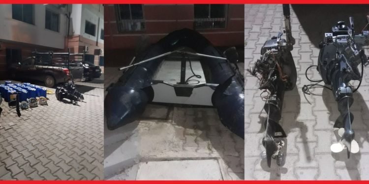 وقد أسفرت عملية الضبط والتفتيش المنجزة بداخل المنزل المذكور عن حجز قارب مطاطي ومحركين بحريين، علاوة على سيارتين إحداهما نفعية و17 حاوية تضم 340 لترا من المحروقات.