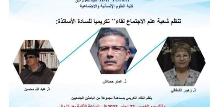 في اطار أنشطتها الثقافية والمعرفية، ستقيم كلية العلوم الإنسانية والاجتماعية بجامعة ابن طفيل يوم الخميس 22 دجنبر 2022 على الساعة الثانية بعد الزوال، حفلا تكريميا لكل من: