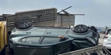 انقلاب شاحنة بسبب الرياح القوية بالطريق السيار بين العرائش وطنجة