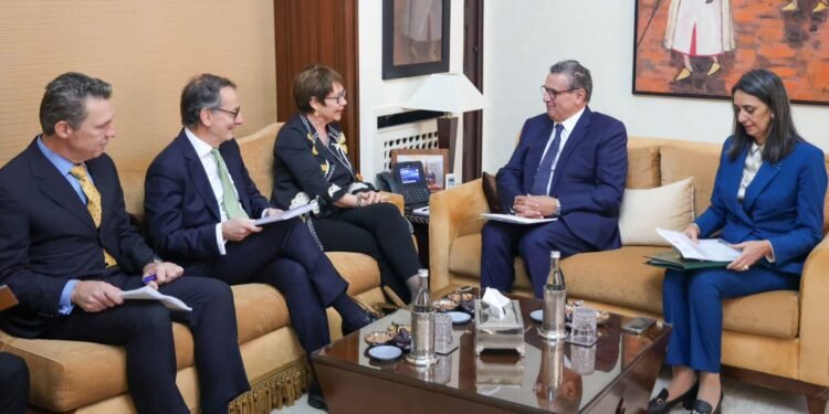 عقد رئيس الحكومة عزيز أخنوش، اليوم، بالرباط، مباحثات مع رئيسة البنك الأوروبي لإعادة الإعمار والتنمية، “أوديل رونو-باسو Odile Renaud-Basso”، بحضور وزيرة الاقتصاد والمالية، نادية فتاح.