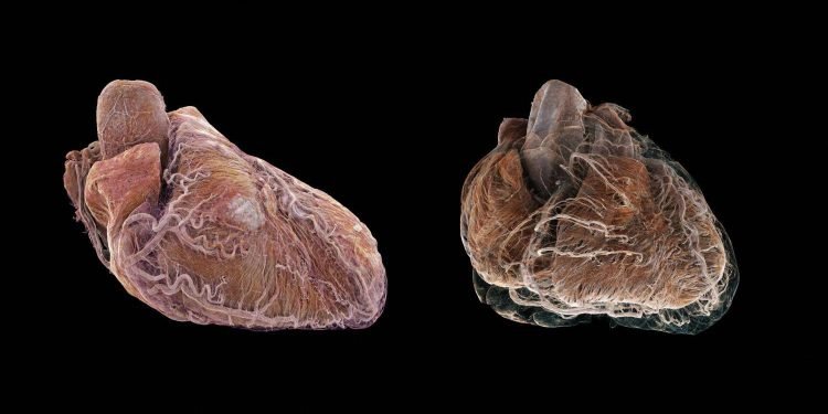 كشفت دراسة حديثة نشرت في مجلة “راديولوجي” نتيجة عمل فريق من الباحثين من كلية لندن الجامعية (UCL) ومركز “السنكروترون الأوروبي” في مدينة غرونوبل الفرنسية، عن أول صورة ثلاثية الأبعاد لقلبين بشريين، أحدهما سليم والثاني مريض، وصولا إلى المستوى الخلوي، باستخدام تقنية متطورة.