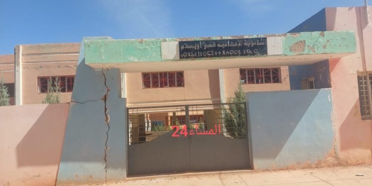 حملنا فضولنا إلى التقصي عن  حقيقة تلك الشقوق، فكانت محطتنا الأولى بعض المصادر النقابية(FNE) التي كانت أول من انتبه للوضعية التي توجد عليها جدران الثانوية الإعدادية عسو أوبسلام، بحكم انتمائها لأسرة الأطر التربوية المزاولة لمهامها بها، حيث أخبرت المديرية الإقليمية للتربية الوطنية  بذلك. فما كان أمام هذه الأخيرة إلا إيفاد لجنة تقنية لمعاينة الوضع.إلا أن تقريرها كان ينقصه التقييم العلمي والدقيق في أمور تدخل في اختصاصات أهل الهندسة والعمران. استمرت الدراسة وسط تطمينات لجنة المديرية الإقليمية للتربية الوطنية بخنيفرة، إلا أن الشقوق كان لها كلام آخر. فهي لم تكن مجرد شقوق سطحية، بل تصدعات ترسل بين الفينة والأخرى أصواتا ناتجة عن تفكك مكونات الجدران. حينها لم يكن أمام شغيلة المؤسسة التربوية إلا معاودة لفت انتباه المسؤولين لخطورة الوضع، فكانت الاستجابة فورية، لكن هذه المرة تولت عملية معاينة الوضع وإنجاز خبرة تقنية لجنة مكونة من أطر مختصة تابعة لعمالة إقليم خنيفرة التي أوصت بضرورة الإخلاء الفوري للمؤسسة، لأنها تشكل خطرا على حياة مرتاديها من تلاميذ وأطر تربوية وإدارية، ليصعق الجميع بخبر توزيع التلاميذ على مؤسسات أخرى بعيدة عن سكناهم بعدة كيلومترات، لتنضاف إلى معاناة البعد معاناة التكدس في حجرات بعضها شيد من البناء المفكك “البريفبريكي”. ولكم أن تتصوروا ظروف التحصيل في كذا شروط ومردود الأساتذة حينما يتجاوز عدد التلاميذ ما هو مسموح به بكثير.