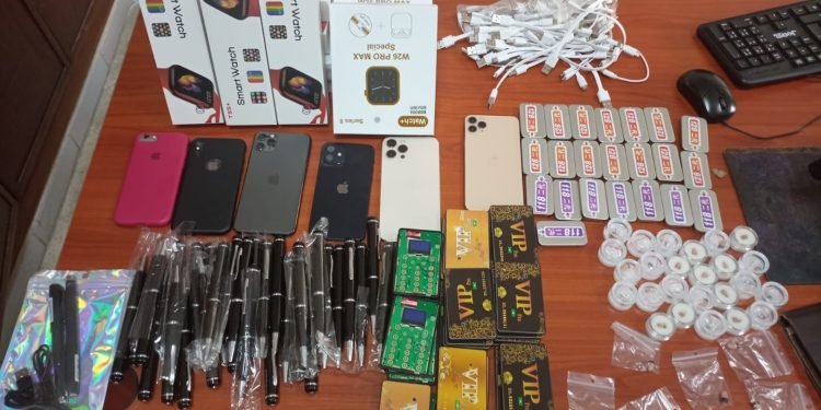 وأسفرت عملية الضبط والتفتيش عن العثور بحوزة المشتبه فيهما على 64 وحدة للاتصال اللاسلكي و57 سماعة ذكية و18 ساعة يدوية ذكية و45 شاحن خاص بهذه الأجهزة المهربة، علاوة على حجز هواتف نقالة ومبلغ مالي من متحصلات هذه الأنشطة الإجرامية.