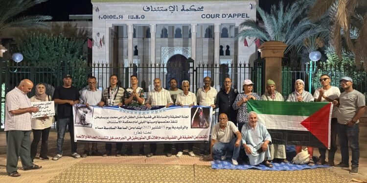 دخلت قضية مقتل الراعي الصغير محمد بويسليخن منعطفا جديدا، بعدما دعت لجنة الحقيقة والمساءلة إلى اعتصام ليلي أمام مسحكمة الاستئناف بالرشيدية، شاركت فيه أمس فعاليات حقوقية ومدنية وسياسية إلى جانب عائلة الضحية، من أجل المطالبة بكشف الحقيقة كاملة وعدم إفلات أي طرف من المسؤولية.