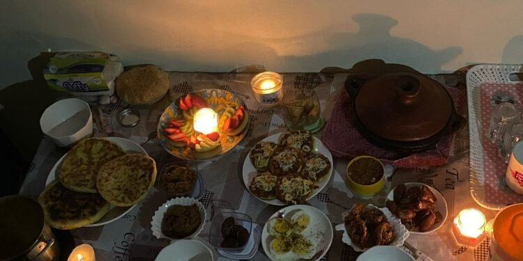 *الصورة لأسرة تتناول وجبة الفطور تحت ضوء الشموع*