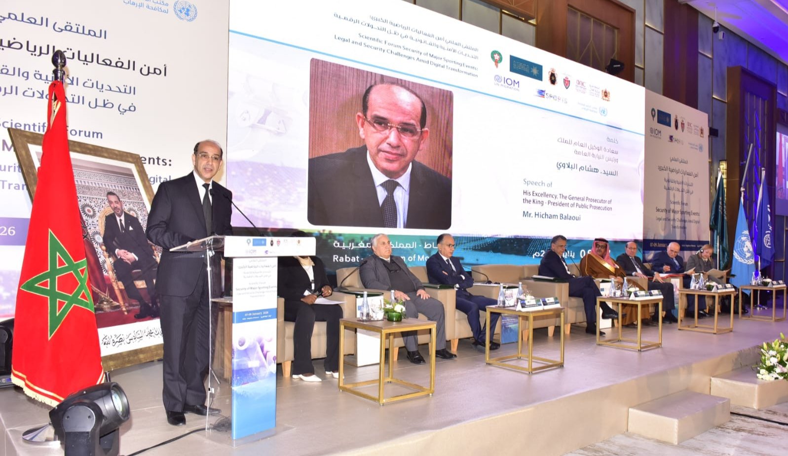 أكد هشام البلاوي، الوكيل العام للملك لدى محكمة النقض رئيس النيابة العامة، على أهمية الملتقى العلمي المنظم، صباح اليوم، من طرف وزارة العدل بشراكة مع جامعة نايف العربية للعلوم الأمنية، تحت عنوان “أمن الفعاليات الرياضية الكبرى: التحديات الأمنية والقانونية في ظل التحولات الرقمية”، وقال إن هذا اللقاء يكتسي أهمية خاصة لتزامنه مع استعداد المملكة المغربية لاحتضان تظاهرات رياضية كبرى، وفي مقدمتها كأس إفريقيا للأمم، وما تمثله من فرصة لإبراز المؤهلات التنظيمية والأمنية والخدماتية للمغرب، بما يعزز جاهزيته لاستضافة تظاهرات دولية كبرى، وعلى رأسها كأس العالم 2030.