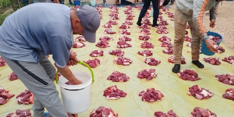 شهد الدوار خلال الاحتفال توزيع لحم البقر الذي ذبح خصيصًا لهذه المناسبة، في خطوة رمزية تجمع بين الاحتفاء الديني والتكافل الاجتماعي. وتأتي هذه المبادرة بفضل دعم أحد المحسنين المقيمين في الخارج، الذي تكفل بتوفير الأبقار اللازمة لإحياء هذا التقليد العريق. وقد استفاد من هذه المبادرة أكثر من 150 أسرة، حيث تم توزيع اللحوم بشكل منصف، ما عزز روح الإخاء والتآزر بين سكان الدوار.