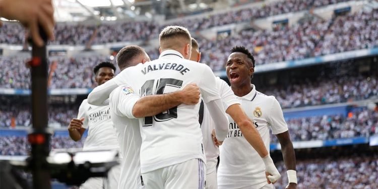 وتقدم الريال بهدف حمل توقيع نجمه الفرنسي كريم بنزيمة في الدقيقة 12، قبل أن يضيف زميله الأوروغواياني فيديريكو فالفيردي الهدف الثاني في الدقيقة 35.