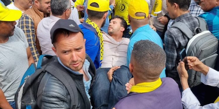 وحاصرت عناصر القوات العمومية المحتجين الذين توافدوا بكثافة إلى ساحة 20 غشت، حيث وجد هؤلاء أنفسهم ممنوعين من التحرك في المسيرة المقررة من طرف ال”سيديتي” تحت شعار “لا تنازل عن المطالب والحقوق والمكتسبات”.