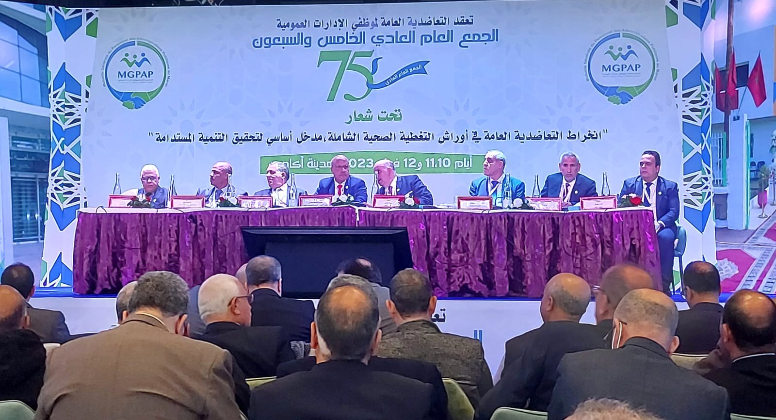 انطلقت هذا الصباح أشغال الجمع العام العادي ال75 للتعاضدية العامة لموظفي الإدارات العمومية بأكادير، الذي ينعقد تحت شعار “انخراط التعاضدية العامة في أوراش التغطية الصحية الشاملة، مدخل أساسي لتحقيق التنمية المستدامة”.