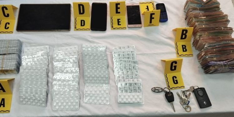 وجرى توقيف المشتبه فيهم متلبسين بحيازة وترويج المخدرات، حيث أسفرت عملية الضبط والتفتيش عن العثور بحوزتهم على 3000 قرص طبي مخدر من نوع “ريفوتريل”، علاوة على مبلغ مالي يناهز 15 مليون سنتيم، يشتبه في كونه من متحصلات هذا النشاط الإجرامي.