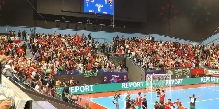نجح المنتخب الوطني المغربي في الاحتفاظ بكأس أمم أفريقيا لكرة القدم داخل القاعة للمرة الثالثة على التوالي، بعدما فوزه، مساء اليوم، في النهائي على نظيره الأنغولي بحصة 5 مقابل 1.