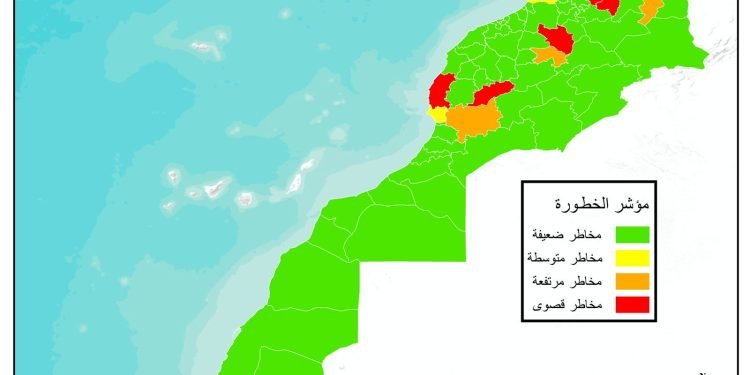 هذا في الوقت الذي صنفت فيه الوكالة الوطنية للمياه والغابات أقاليم الحسيمة، القنيطرة، سيدي سليمان و أكادير إداوتنان في مستوى الخطورة المتوسطة (المستوى الأصفر).