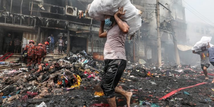 جاء ذلك خلال تقرير تليفزيوني مذاع عبر قناة يورونيوز، بعنوان: “حريق هائل يلتهم سوقًا شعبية للملابس في بنغلاديش”.