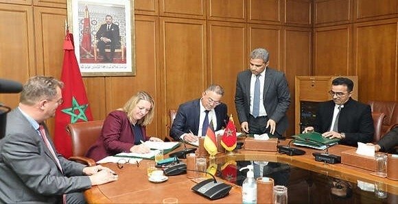 ويتعلق المشروع الأول، الذي وقعه بالأحرف الأولى الوزير المنتدب لدى وزيرة الاقتصاد والمالية المكلف بالميزانية، فوزي لقجع، ومديرة مكتب بنك التنمية الألماني بالمغرب، جان راجبار، ببرنامج دعم ورش الحماية الاجتماعية من خلال قرض مدعوم بقيمة 120 مليون أورو، مصحوبا بهبة قدرها 2 مليون أورو، ستساهم في تحسين الظروف المعيشية للساكنة من خلال دعم المشروع الملكي للحماية الاجتماعية.