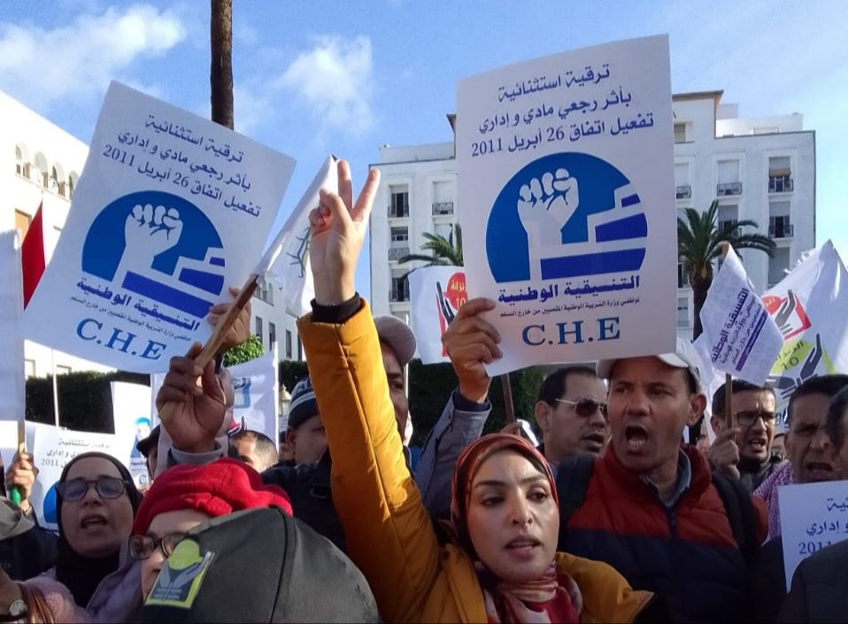 وأكد التنسيق، في بيان له، أن فئة واسعة من نساء ورجال التعليم، من أساتذة الابتدائي والإعدادي والملحقين التربويين وملحقي الاقتصاد والإدارة، ما تزال محرومة من حقها في الترقية إلى خارج السلم بأثريه المالي والإداري، رغم استناد هذا المطلب إلى اتفاق 26 أبريل 2011 الذي تم تفعيله في قطاعات أخرى كالصحة والعدل والمالية دون قطاع التعليم، معتبرا ذلك خرقا لمبدأ العدالة الاجتماعية وتكريسا للتمييز بين الموظفين.