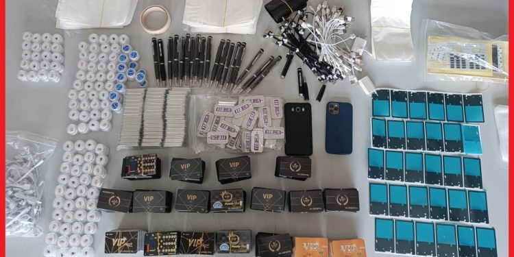 وجرى توقيف المشتبه فيه متلبسا بحيازة وترويج معدات يشتبه في استخدامها في الغش في الامتحانات، وهي 302 بطاقة إلكترونية من نوع “VIP”، و133 جهازا إلكترونيا خاصا بقراءة هذه البطائق، و20 قلما مجهزا بشرائح هاتفية، علاوة على 300 سماعة لا سلكية دقيقة، و119 سلكا كهربائيا للشحن.