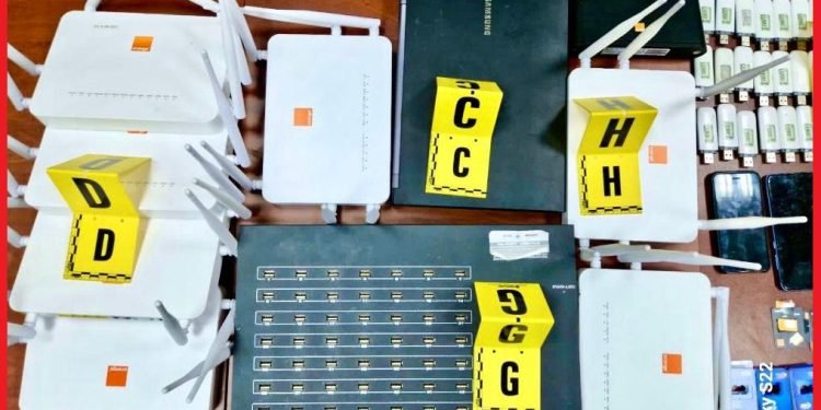 كما أسفرت عملية التفتيش المنجزة بداخل منزل المشتبه فيه عن حجز 471 شريحة هاتفية وطنية و58 بطاقة تعبئة، فضلا عن حاسوب محمول ووحدة مركزية للكمبيوتر و52 جهازا إلكترونيا ودعامات معلوماتية تستعمل في هذا النشاط الإجرامي.