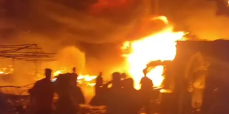 شب حريق مهول، ليلة اليوم، بسوق للأثاث المنزلي المستعمل بمدينة مشرع بلقصيري.