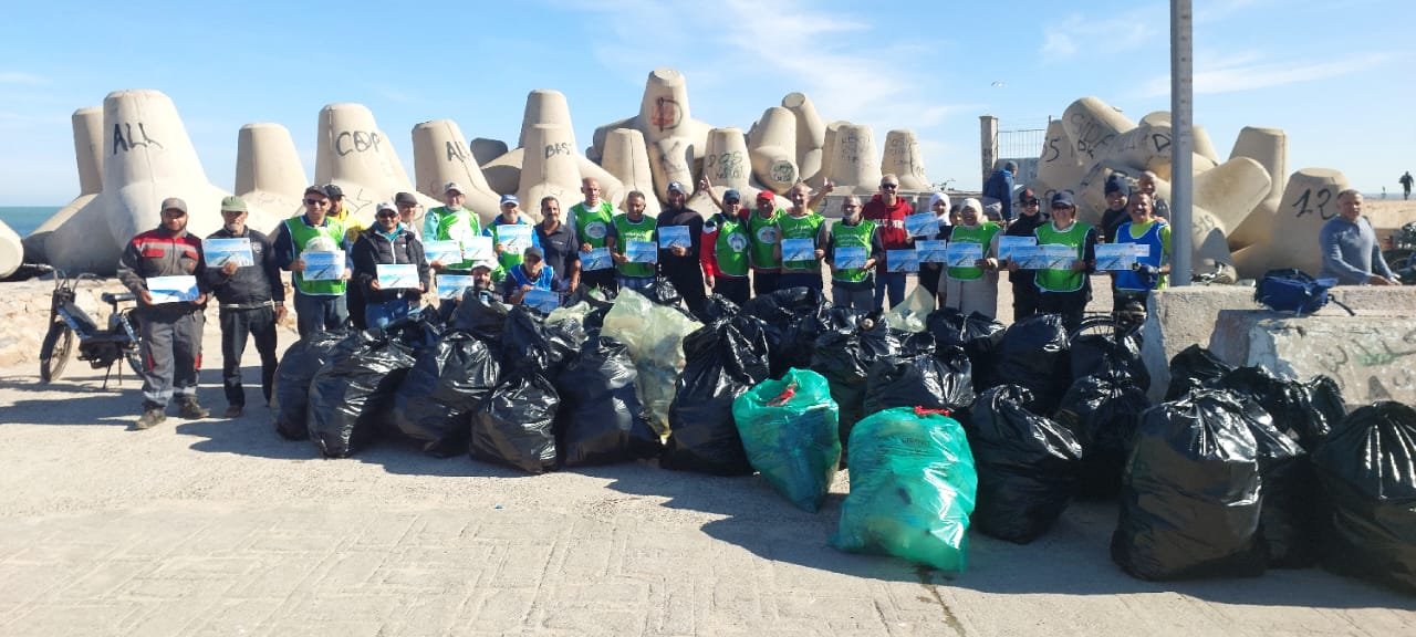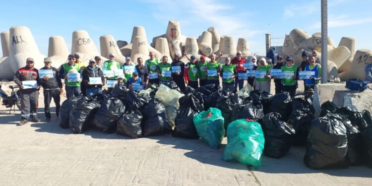 حملة بيئية لتنظيف منطقة المون بميناء الجديدة