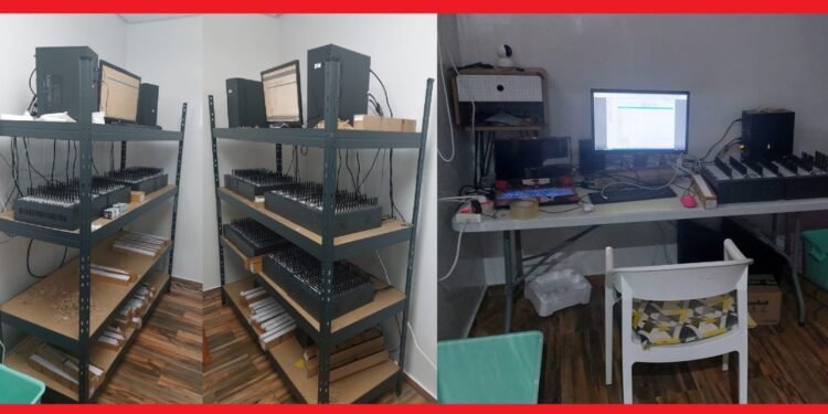 وأسفرت عملية الضبط والتفتيش المنجزة بداخل منزل يستغله المشتبه فيهم عن حجر مجموعة من الحواسيب الثابتة والمحمولة وكمية مهمة من الشرائح الهاتفية، علاوة على أجهزة إلكترونية سلكية ولاسلكية ومعدات معلوماتية تستعمل في هذا النشاط الإجرامي.