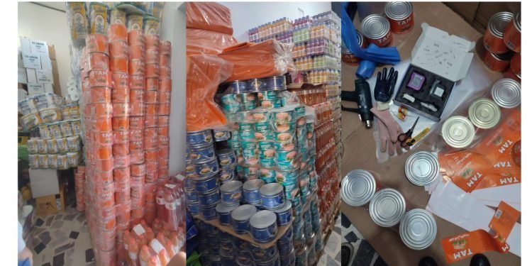 وأسفرت عمليات التفتيش المنجزة بالمخزن الذي يستغله المشتبه فيهم بمدينة طنجة، بتنسيق مع مصالح المكتب الوطني للسلامة الصحية للمنتجات الغذائية، عن حجز كميات مهمة من المواد الغذائية المعلبة والمواد الاستهلاكية المخزنة في ظروف تنعدم فيها شروط السلامة الصحية، فضلا عن حجز معدات تستعمل في التلاعب بتواريخ صلاحيتها وإعادة تغليفها.