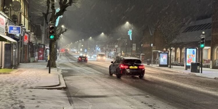 وتراكمت الثلوج ليلاً في أنحاء مختلفة من إنكلترا وويلز.