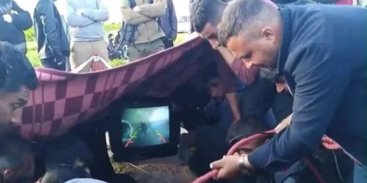 ونشر المرصد مقطع فيديو أظهر تجمع أشخاص حول البئر لمحاولة إخراج الطفل وسط ظلام دامس.