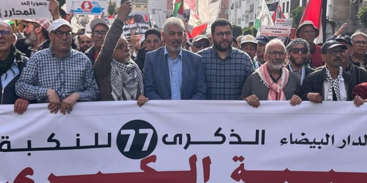 تظاهر آلاف المغاربة في مدينة الدار البيضاء، أمس، للمطالبة بوقف تجويع فلسطينيي قطاع غزة، ورفضا للإبادة الإسرائيلية التي يتعرض لها القطاع منذ 7 أكتوبر 2023.