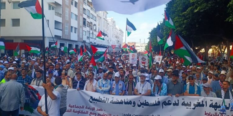 تحت الشعار المركزي: “الشعب المغربي بصوت واحد ضد الإبادة الجماعية، ضد التطبيع، مع المقاومة” عبر المتظاهرون عن تضامنهم المطلق مع الشعب الفلسطيني وأهل غزة الصامدة، ورفضهم القاطع لجرائم الحرب والتجويع، مجددين التأكيد على أن القضية الفلسطينية قضية وطنية وإنسانية لا تسقط بالتقادم.