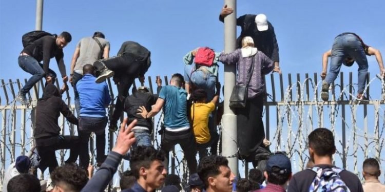 وأضافت أن “القوات العمومية ووﺟﻬﺖ ﻋﻠﻰ إﺛﺮ ﻋﻤﻠﻴﺘﻬﺎ اﻷﻣﻨﻴﺔ، ﺑﺎﻟﺮﺷﻖ ﺑﺎﳊﺠﺎرة ﻣﻦ ﻗﺒﻞ ﺟﻤﻮع اﳌﺮﺷﺤﲔ ﻟﻠﻬﺠﺮة اﳌﺘﻮاﺟﺪﻳﻦ ﰲ اﻷﻣﺎﻛﻦ اﳌﺠﺎورة، ﳑﺎ ﻧﺘﺞ ﻋﻨﻪ إﺻﺎﺑﺔ 19 ﻓﺮداً ﻣﻦ اﻟﻘﻮات اﳌﺴﺎﻋﺪة واﻟﻘﻮات اﳌﺴﻠﺤﺔ اﳌﻠﻜﻴﺔ (ﻣﻨﻬﺎ أرﺑﻊ ﺣﺎﻻت اﺻﺎﺑﺘﻬﺎ ﺑﻠﻴﻐﺔ)، وﻛﺬا إﺻﺎﺑﺔ 20 ﺷﺨﺼﺎ ﻣﻦ اﳌﺮﺷﺤﲔ ﻟﻠﻬﺠﺮة اﳌﻮﻗﻮﻓﲔ”.