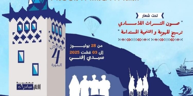 تنظم جمعية “إفني مبادرات” بشراكة مع عدد من المؤسسات العمومية، فعاليات الدورة الرابعة من مهرجان سيدي إفني للثقافة والفن والرياضة، وذلك خلال الفترة الممتدة من 28 يوليوز إلى 3 غشت 2025، تحت شعار: “صون التراث اللامادي ترسيخ للهوية والتنمية المستدامة”، وذلك في أجواء احتفالية تستحضر رمزية الذكريات الوطنية الكبرى، بحسب المنظمين.