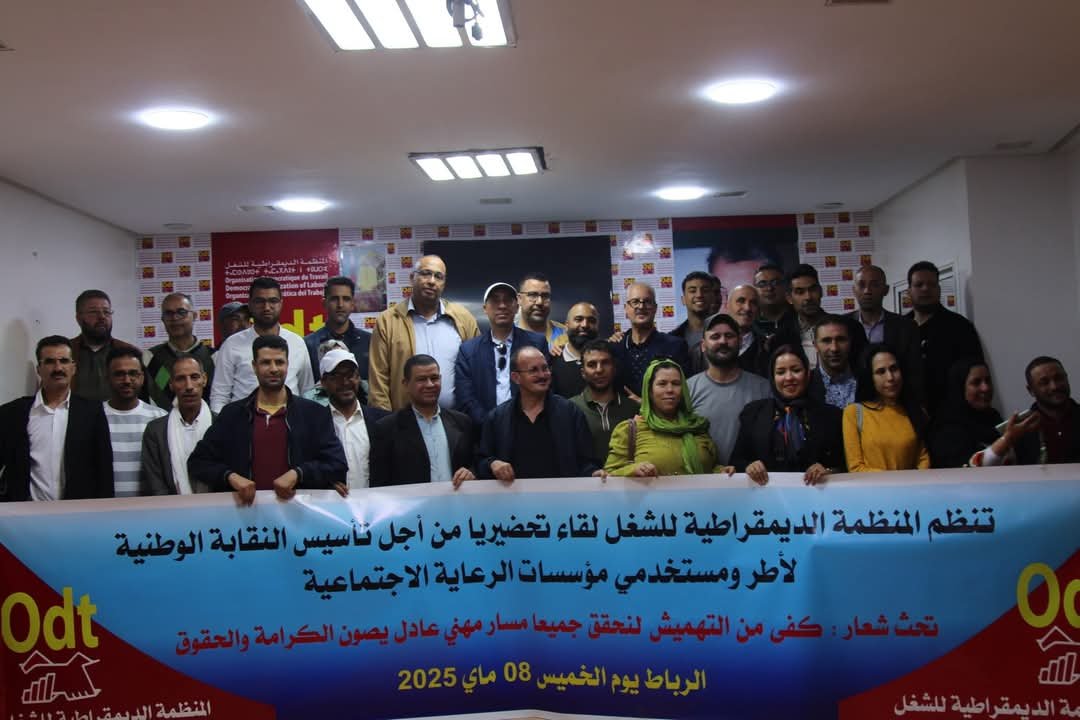 في أولى محطاته النضالية بعد تأسيسه يسعى المكتب الوطني للمنظمة الديمقراطية لأطر ومستخدمي مؤسسات الرعاية الاجتماعية من خلال اجتماعه المنعقد مؤخرا إلى إنجاح محطة فاتح ماي الهامة.