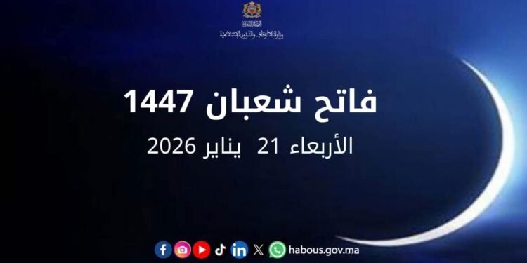 وعلى ضوء ذلك، أفادت الوزارة في بلاغها أن فاتح شهر شعبان سيكون هو يوم الأربعاء 21 يناير 2026م، داعية المواطنات والمواطنين إلى اعتماد هذا التاريخ في ما يتعلق بالعبادات والمعاملات المرتبطة بالتقويم الهجري.