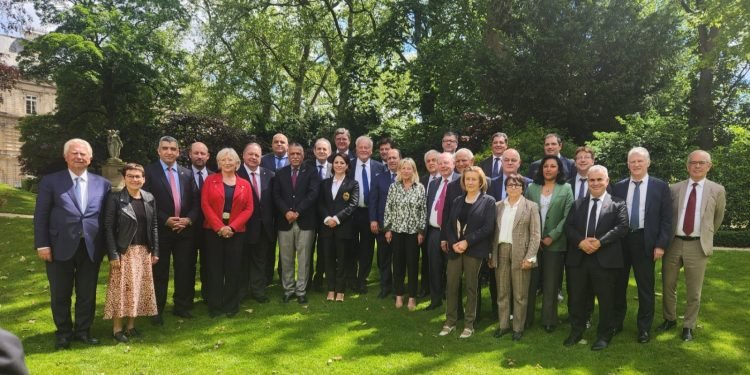 *أعضاء مجموعة الصداقة المغربية الفرنسية بمجلس المستشارين في صورة جماعية مع نظرائهم بمجلس الشيوخ الفرنسي*