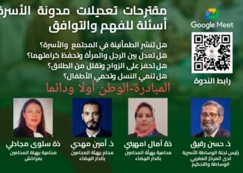 Read moreالمساء24 نظمت المبادرة الوطن أولا ودائما، أمس، ندوة عن بعد حول مدونة الأسرة من أجل فهم مخرجات اللجنة وطرح التساؤلات ...